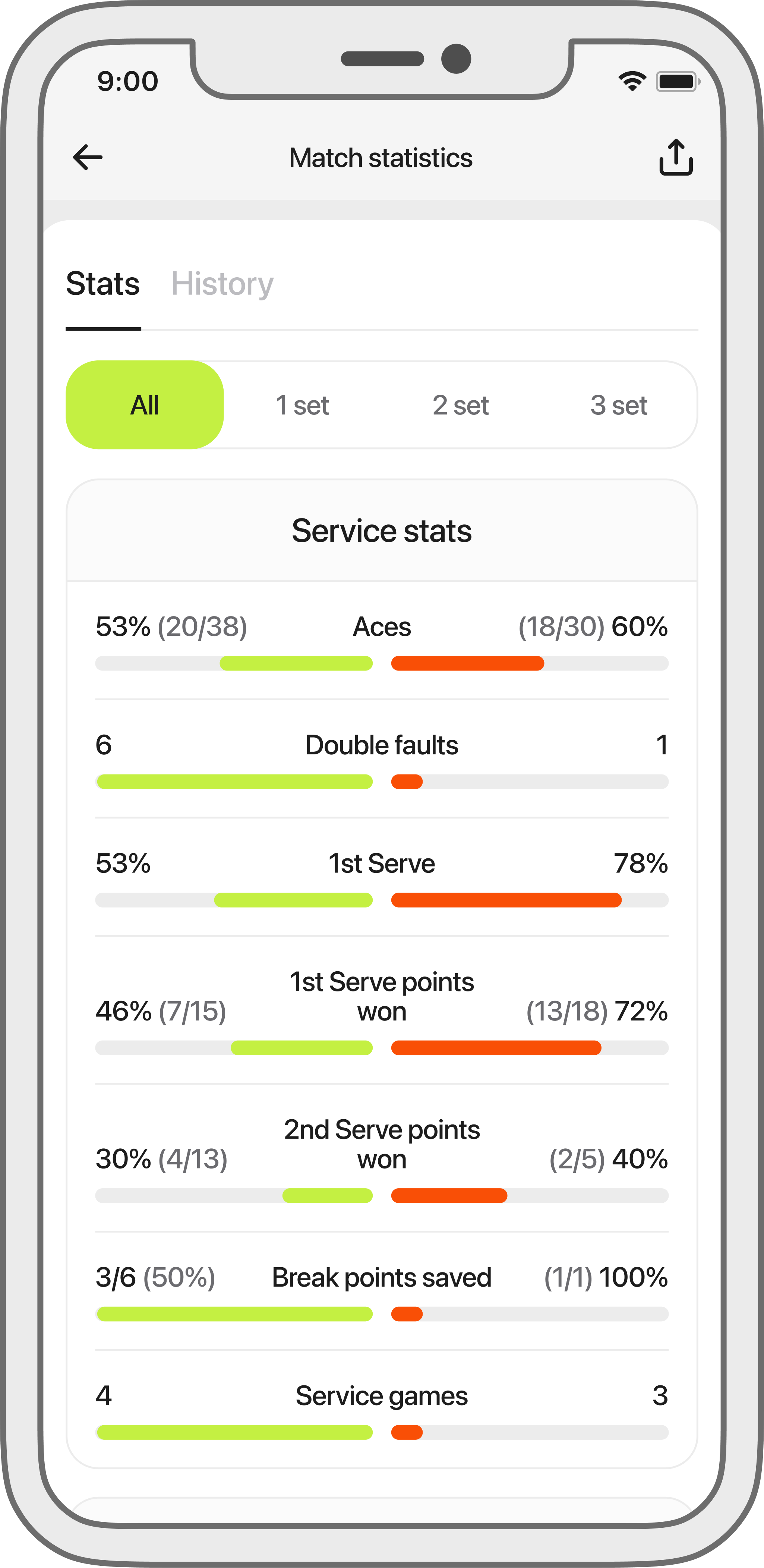 In the few seconds between points, you record the results of the draw. To do this, you just need to triple-tap your Apple Watch. Or you can ask somebody to track the match in First Serve App on your IPhone either.